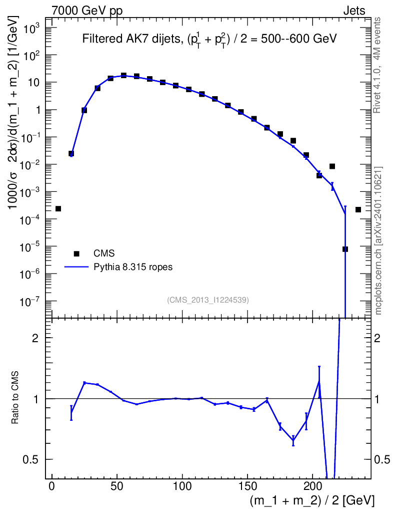 Lines: data, pythia8 8.315 ropes |