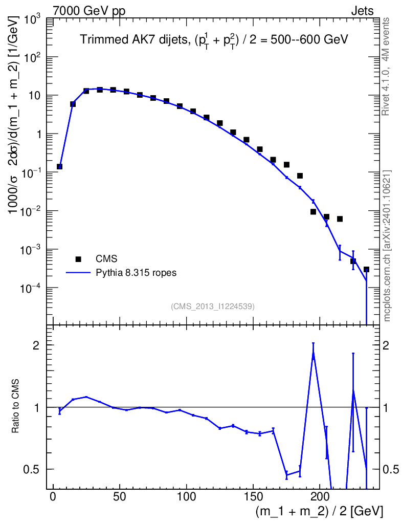 Lines: data, pythia8 8.315 ropes |