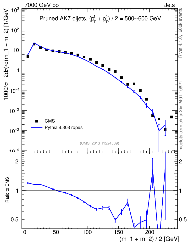 Lines: data, pythia8 8.308 ropes |