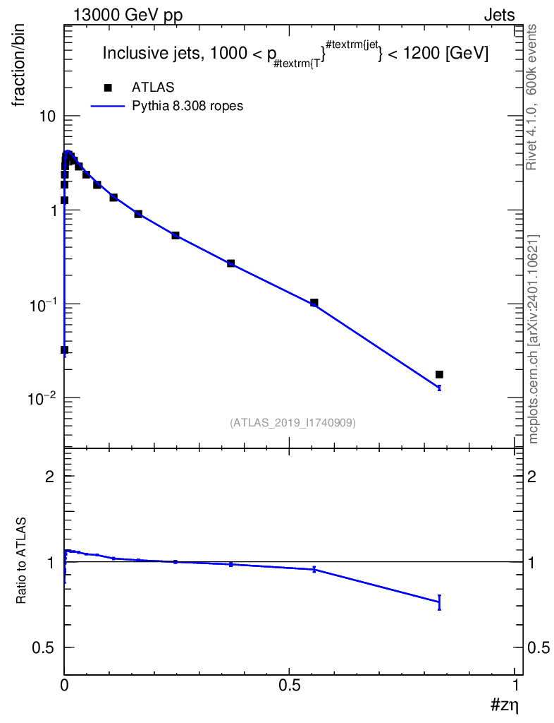 Lines: data, pythia8 8.308 ropes |