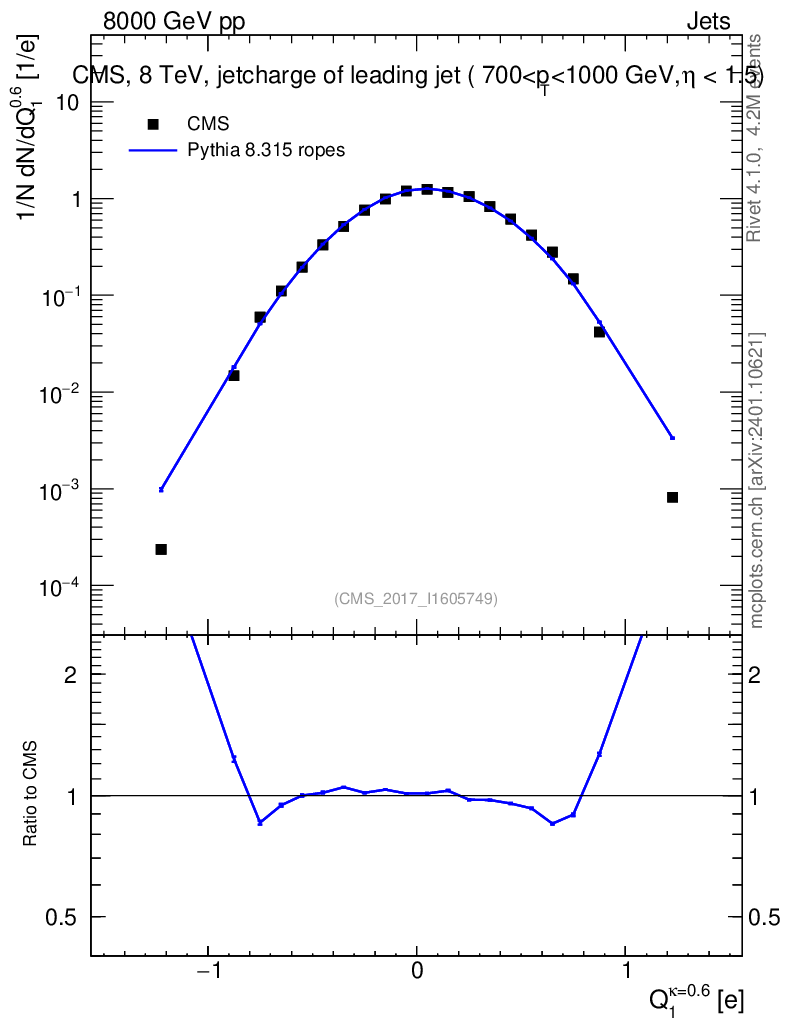 Lines: data, pythia8 8.315 ropes |