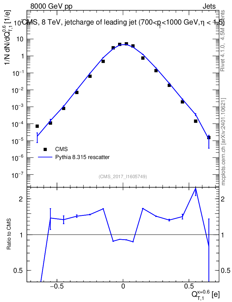 Lines: data, pythia8 8.315 rescatter |