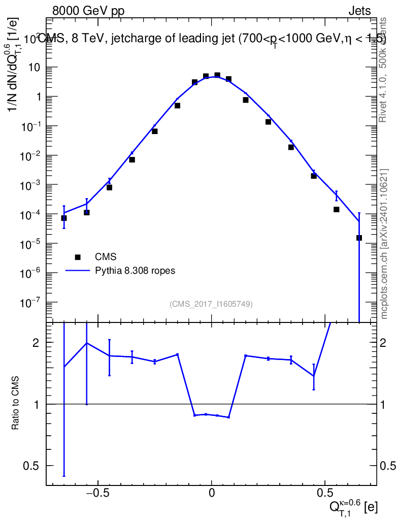 Lines: data, pythia8 8.308 ropes |