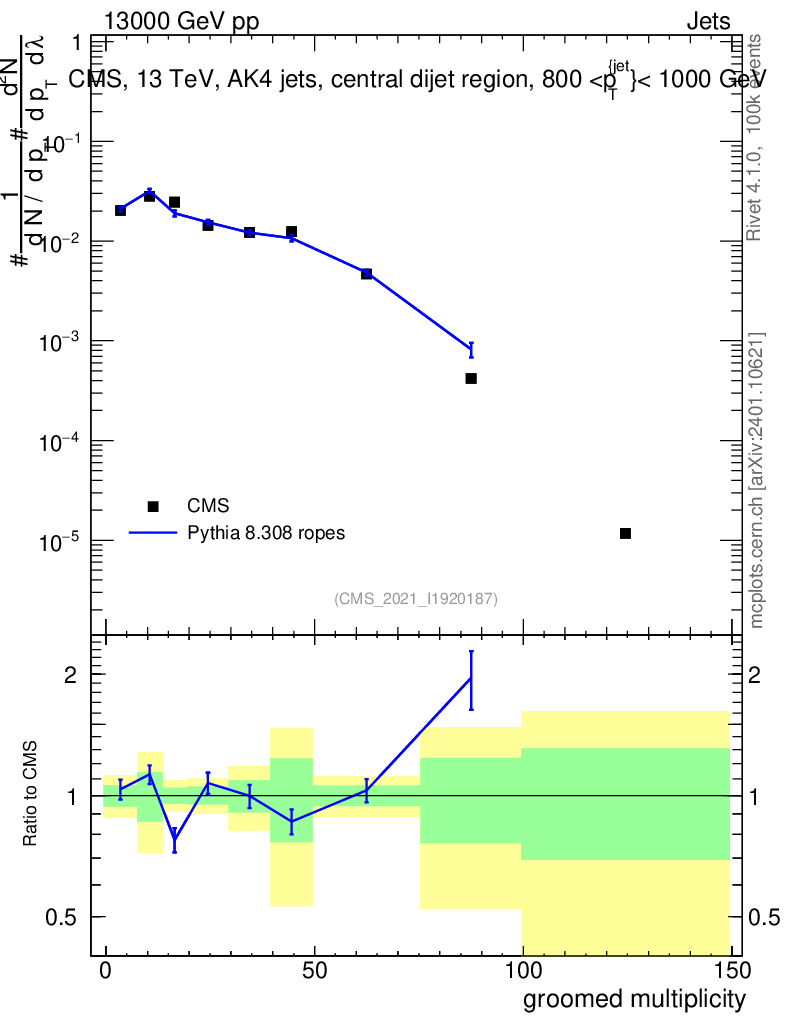 Lines: data, pythia8 8.308 ropes |