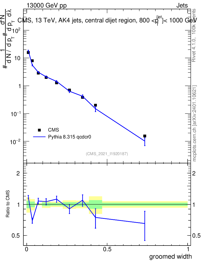 Lines: data, pythia8 8.315 qcdcr0 |