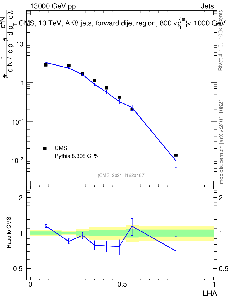 Lines: data, pythia8 8.308 CP5 |
