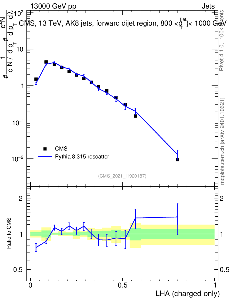 Lines: data, pythia8 8.315 rescatter |