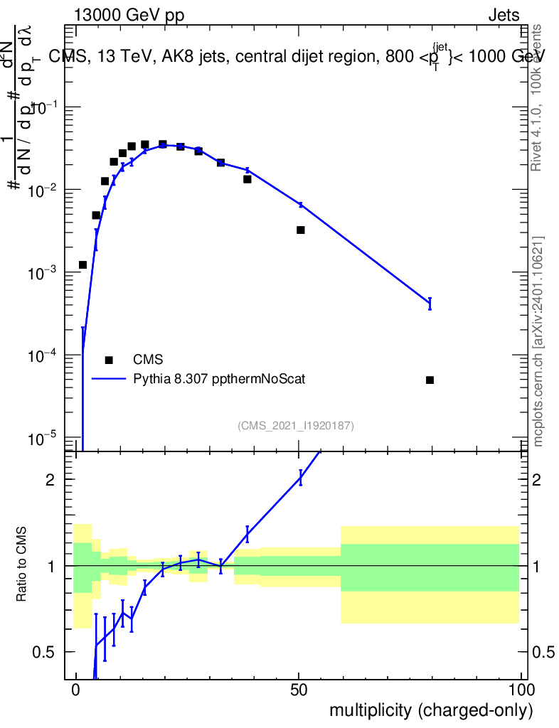 Lines: data, pythia8 8.307 ppthermNoScat |