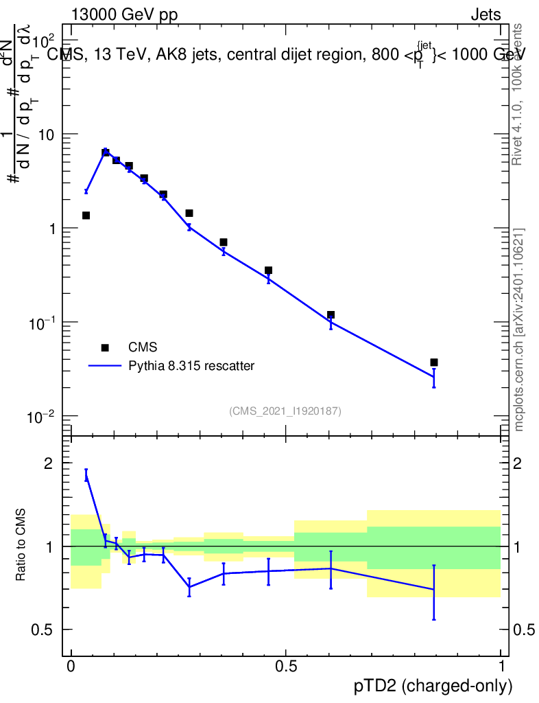 Lines: data, pythia8 8.315 rescatter |