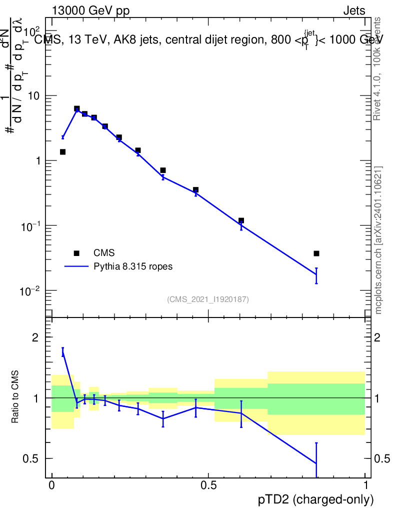 Lines: data, pythia8 8.315 ropes |