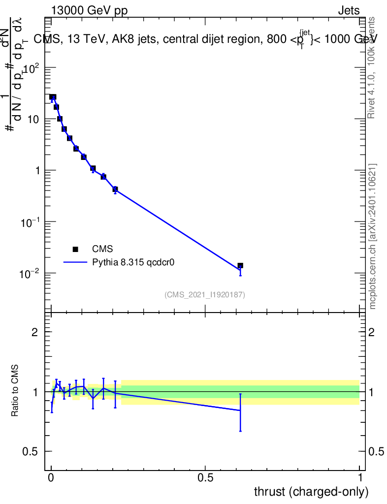Lines: data, pythia8 8.315 qcdcr0 |