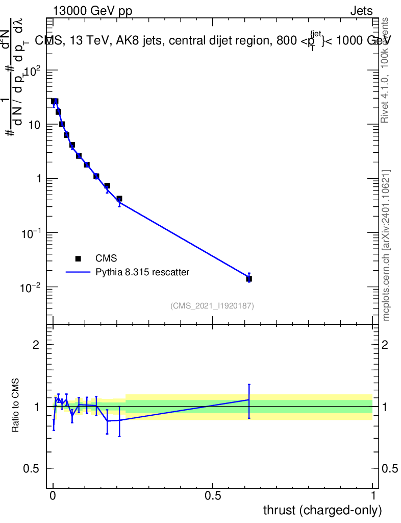 Lines: data, pythia8 8.315 rescatter |