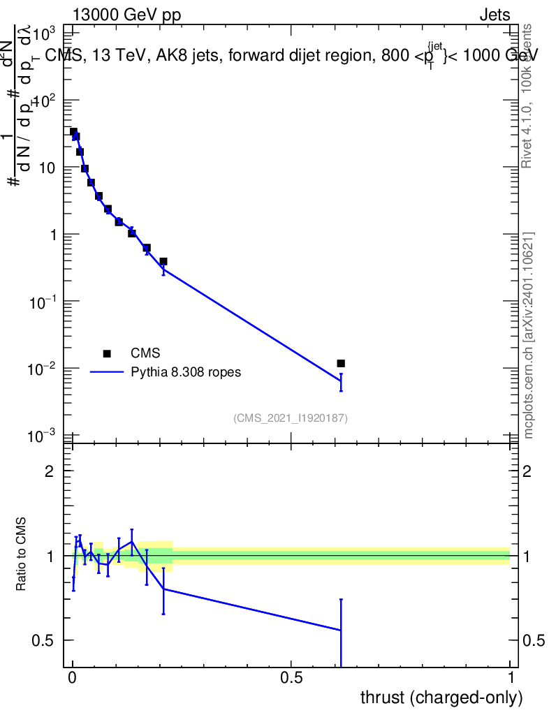 Lines: data, pythia8 8.308 ropes |