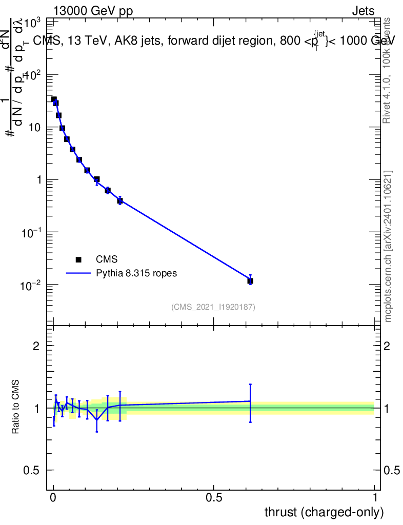 Lines: data, pythia8 8.315 ropes |