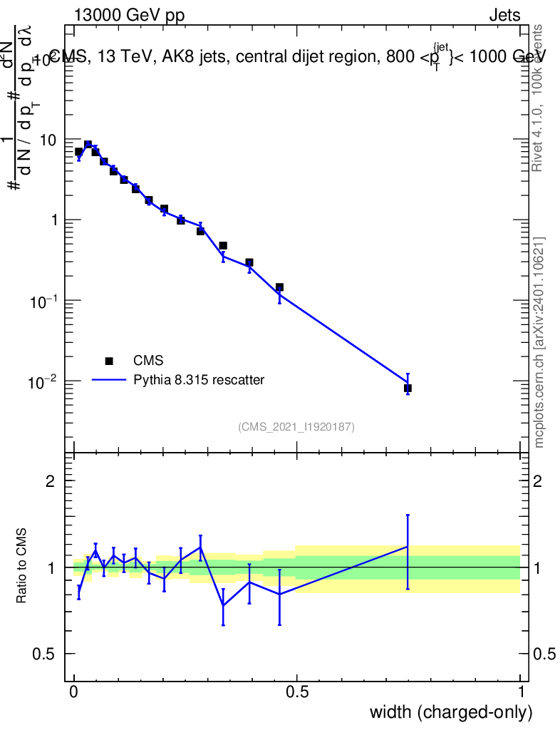 Lines: data, pythia8 8.315 rescatter |