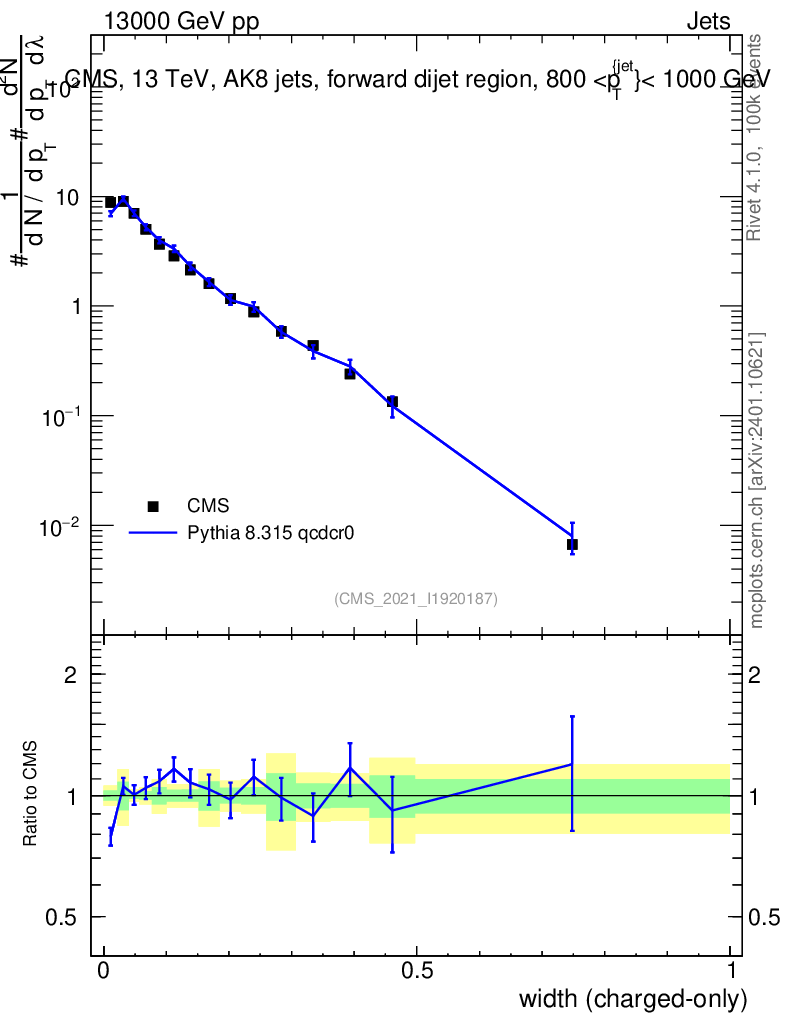 Lines: data, pythia8 8.315 qcdcr0 |