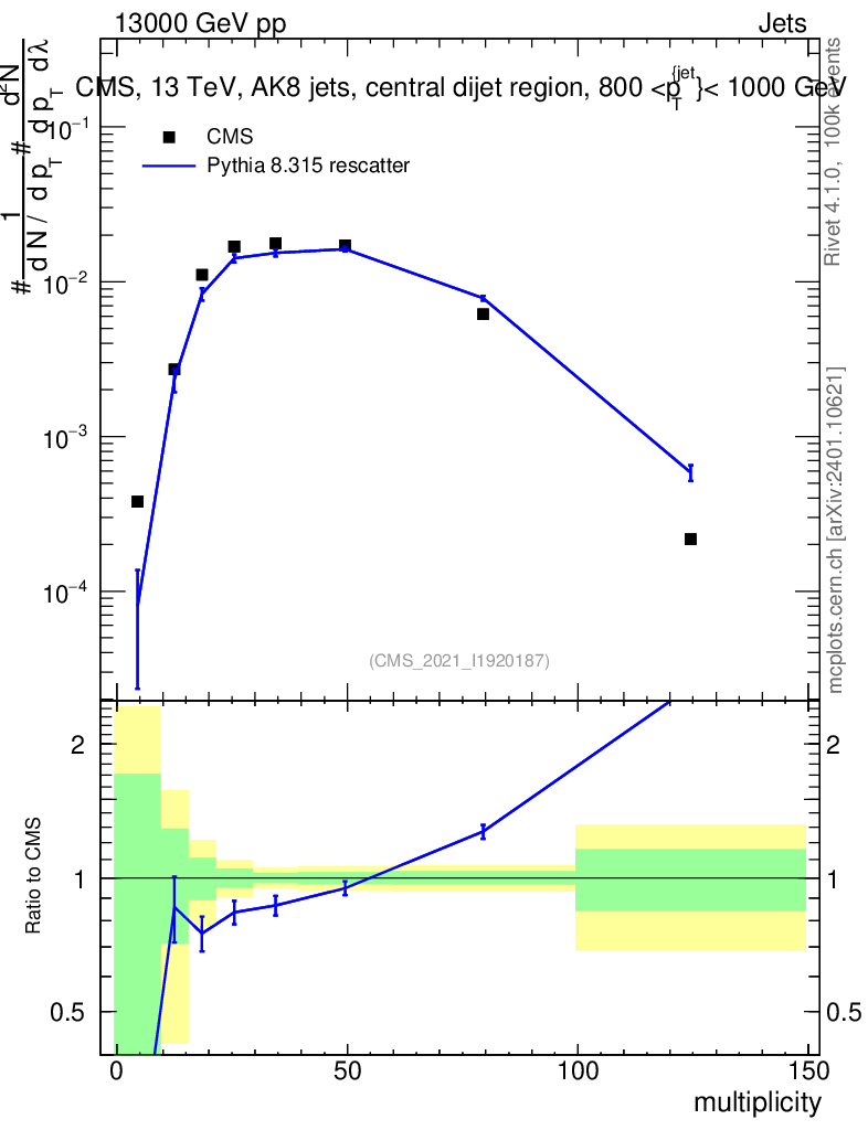 Lines: data, pythia8 8.315 rescatter |