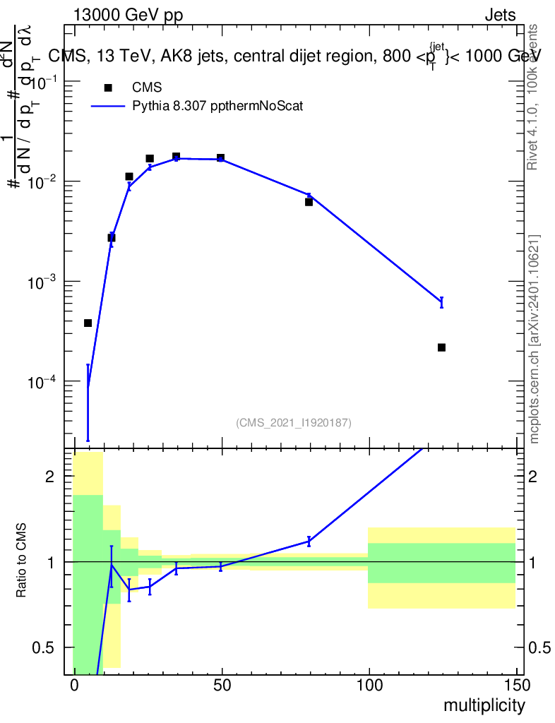 Lines: data, pythia8 8.307 ppthermNoScat |