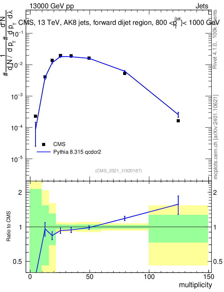 Lines: data, pythia8 8.315 qcdcr2 |