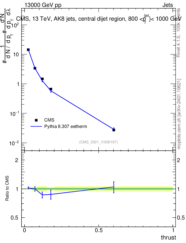 Lines: data, pythia8 8.307 eetherm |