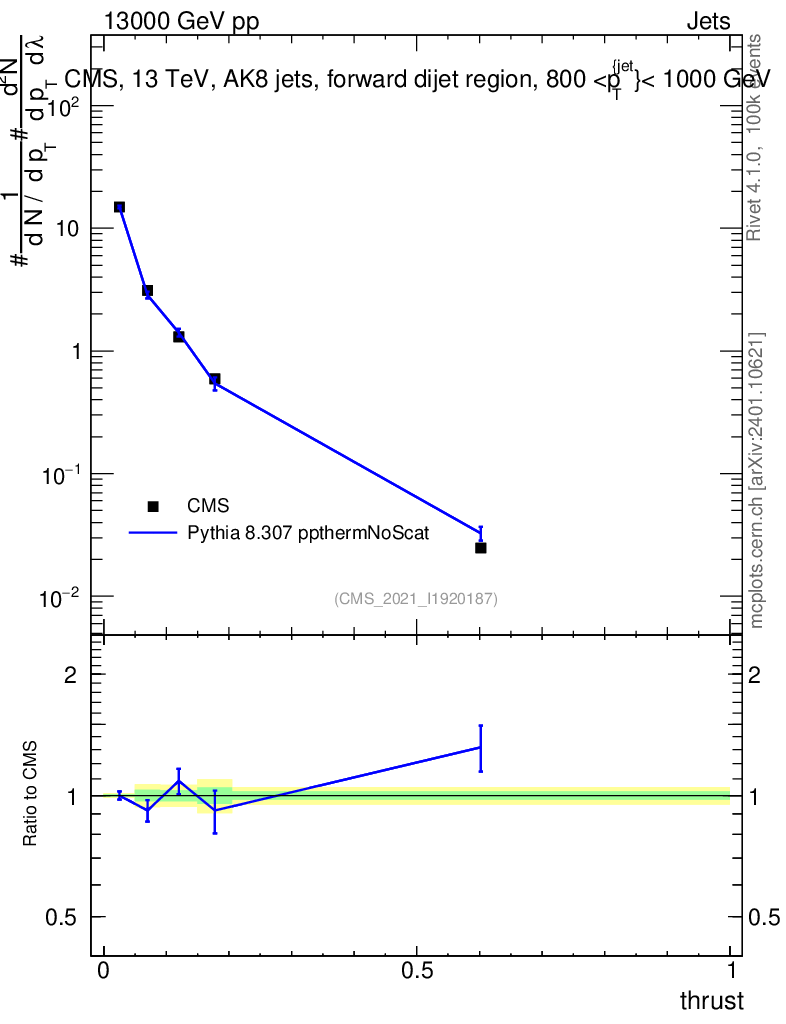 Lines: data, pythia8 8.307 ppthermNoScat |