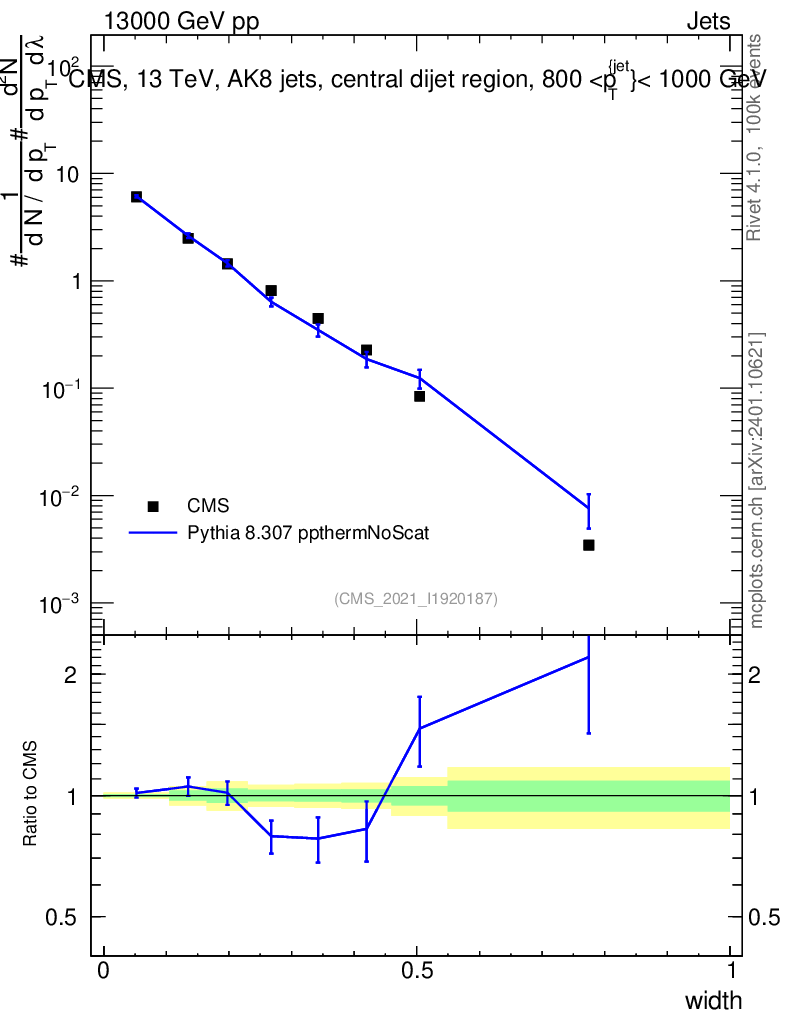Lines: data, pythia8 8.307 ppthermNoScat |