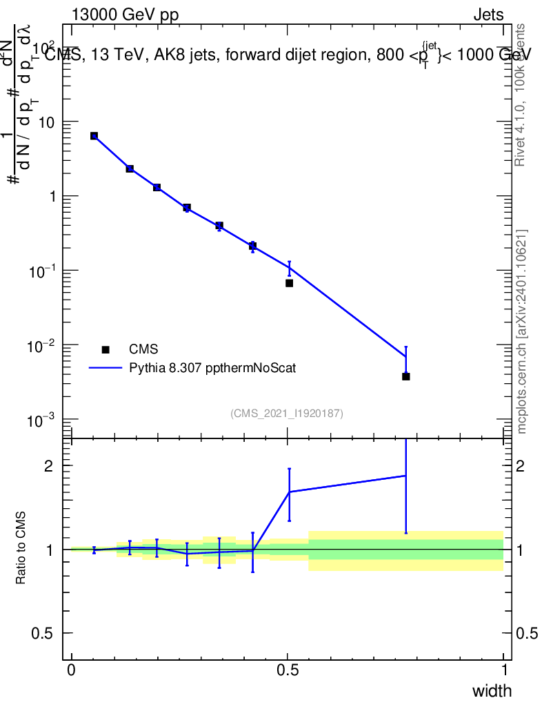 Lines: data, pythia8 8.307 ppthermNoScat |