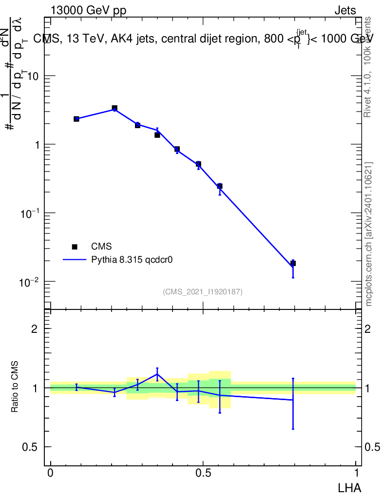 Lines: data, pythia8 8.315 qcdcr0 |