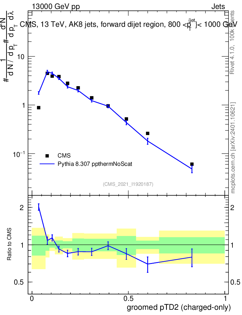 Lines: data, pythia8 8.307 ppthermNoScat |