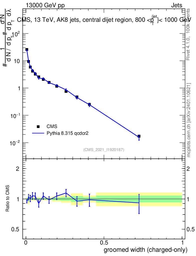 Lines: data, pythia8 8.315 qcdcr2 |