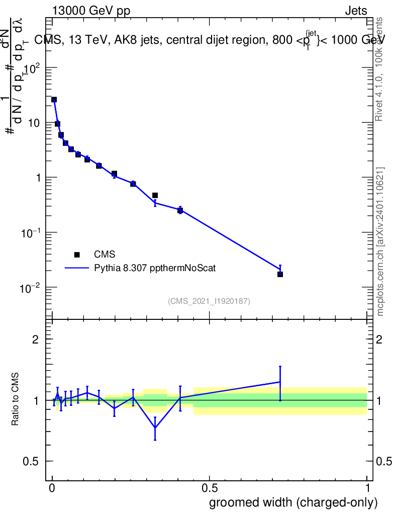 Lines: data, pythia8 8.307 ppthermNoScat |