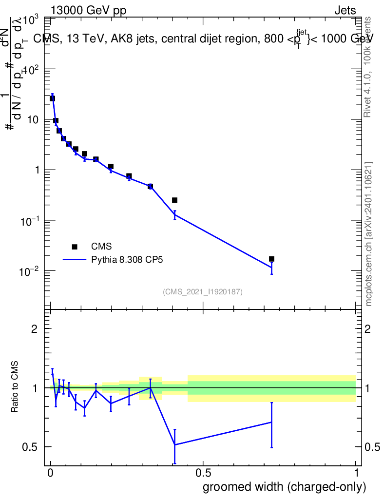 Lines: data, pythia8 8.308 CP5 |