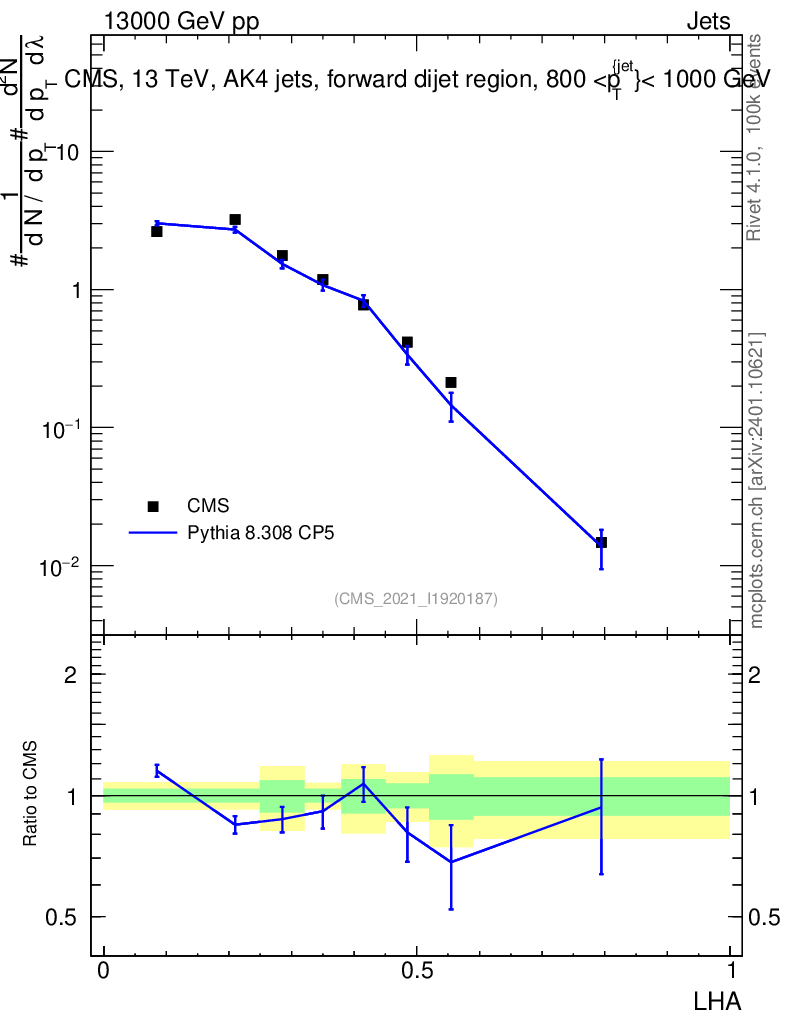 Lines: data, pythia8 8.308 CP5 |