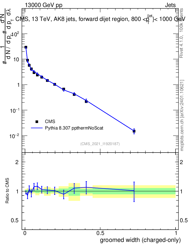 Lines: data, pythia8 8.307 ppthermNoScat |