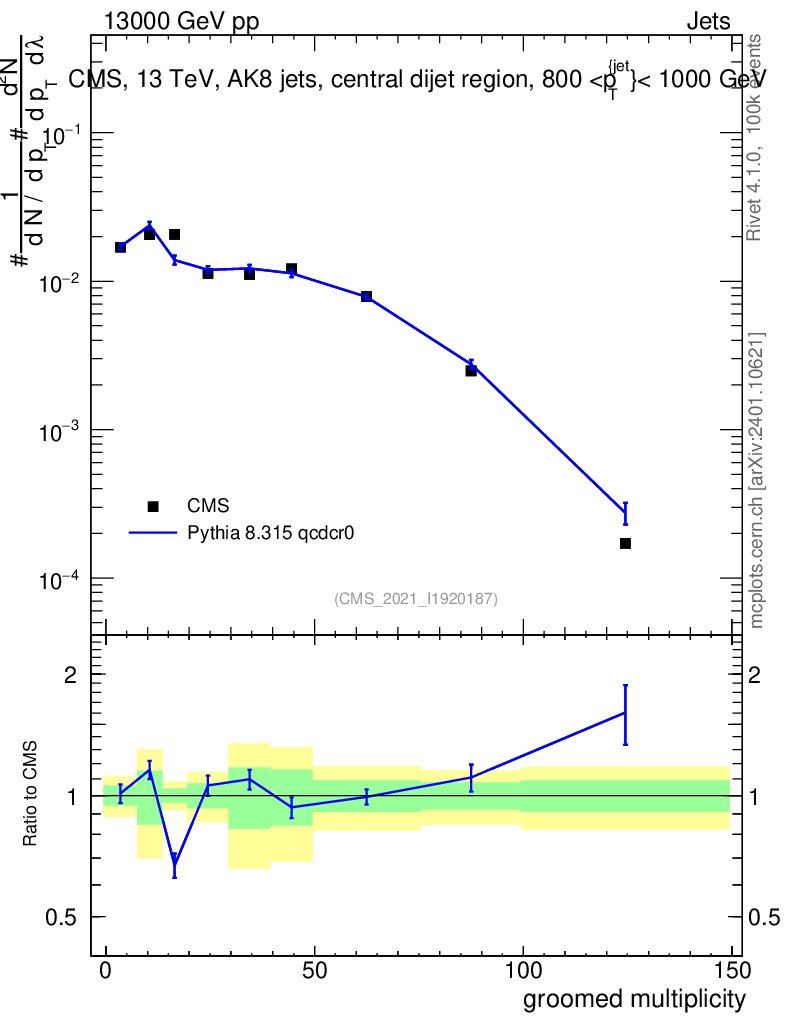 Lines: data, pythia8 8.315 qcdcr0 |