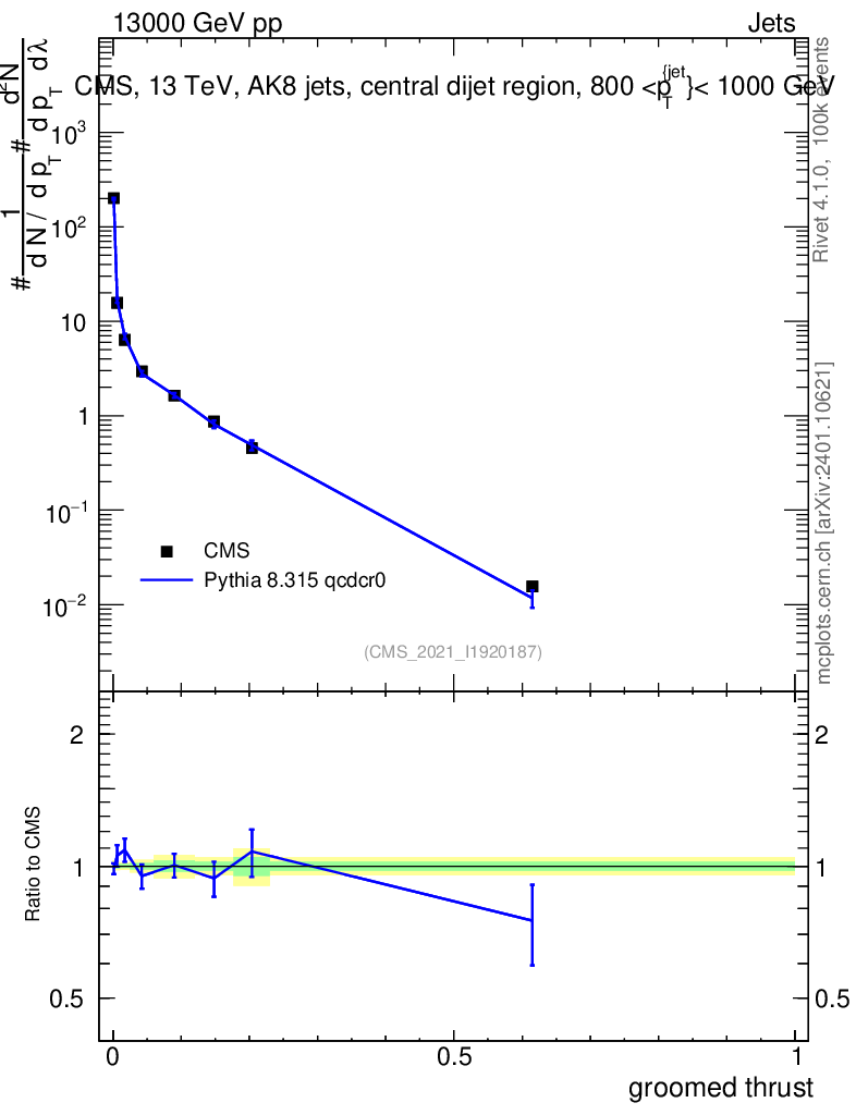 Lines: data, pythia8 8.315 qcdcr0 |