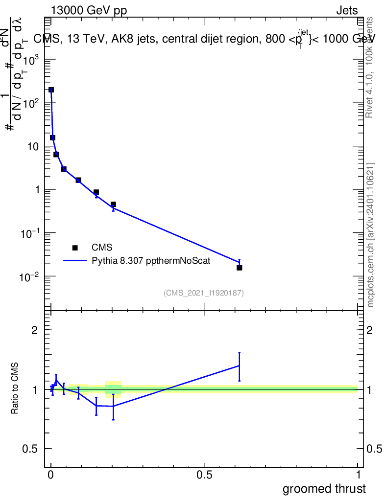 Lines: data, pythia8 8.307 ppthermNoScat |