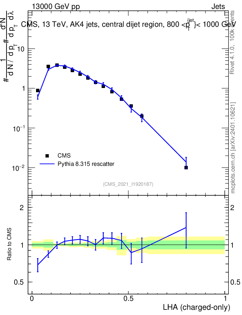 Lines: data, pythia8 8.315 rescatter |