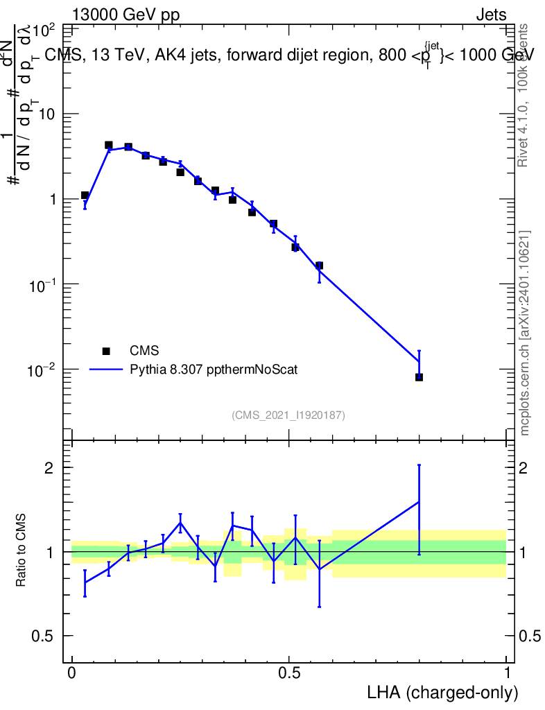 Lines: data, pythia8 8.307 ppthermNoScat |