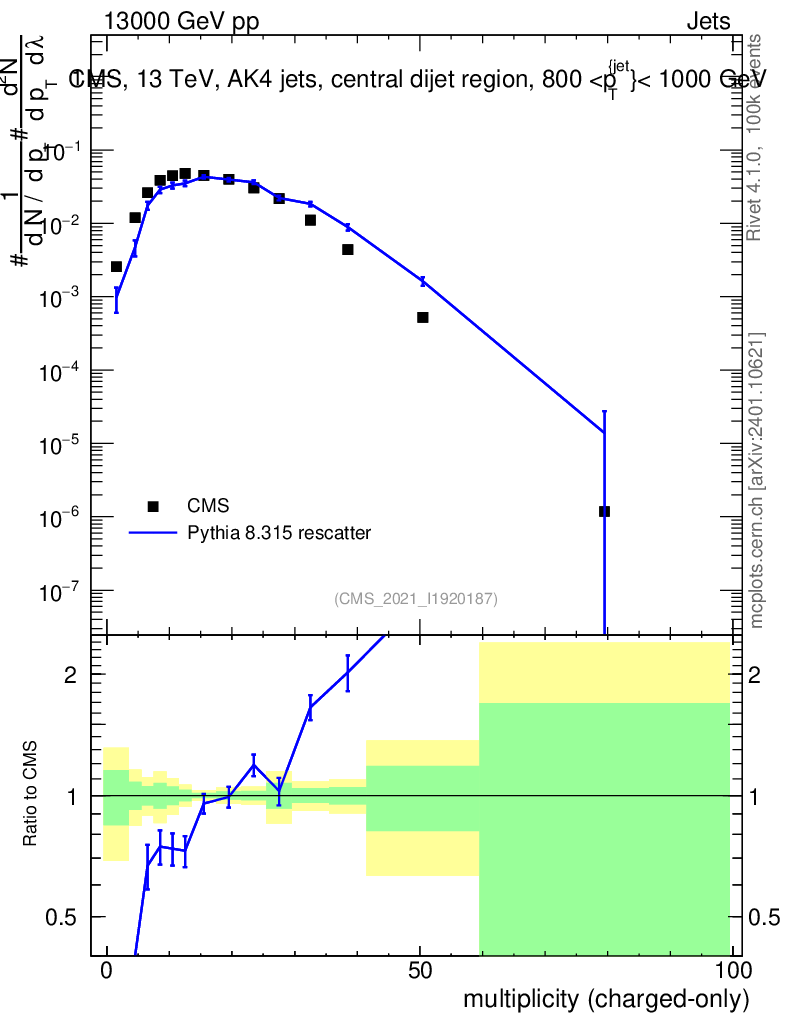Lines: data, pythia8 8.315 rescatter |
