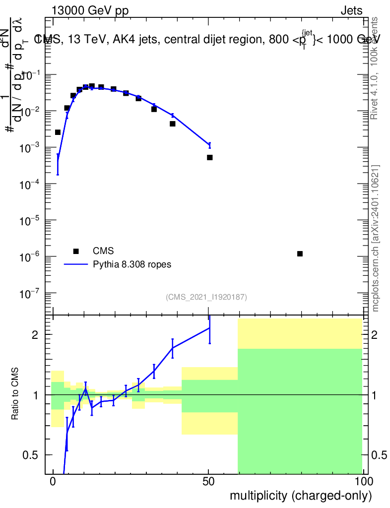 Lines: data, pythia8 8.308 ropes |