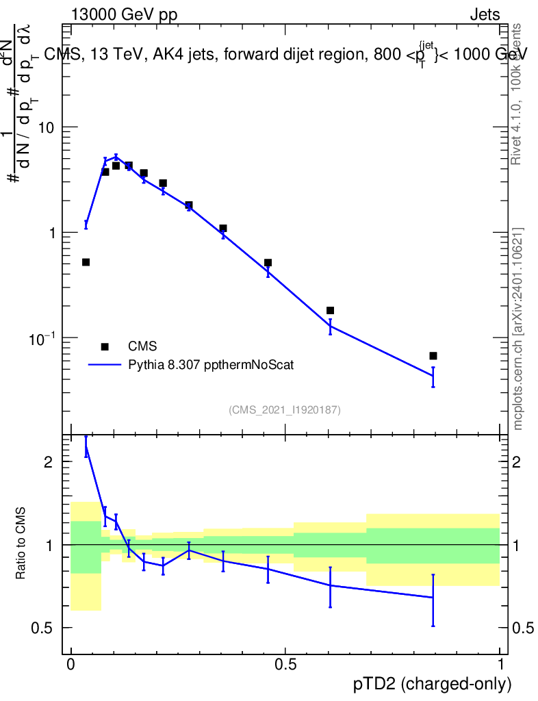 Lines: data, pythia8 8.307 ppthermNoScat |
