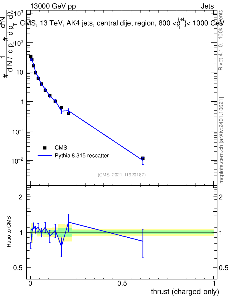 Lines: data, pythia8 8.315 rescatter |