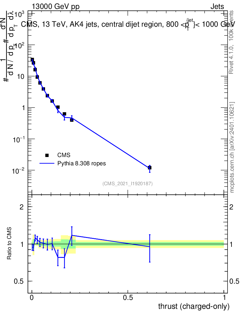 Lines: data, pythia8 8.308 ropes |