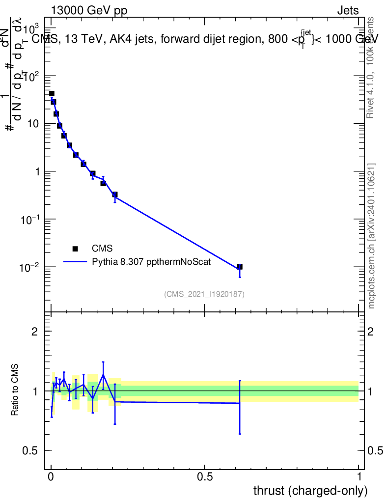 Lines: data, pythia8 8.307 ppthermNoScat |