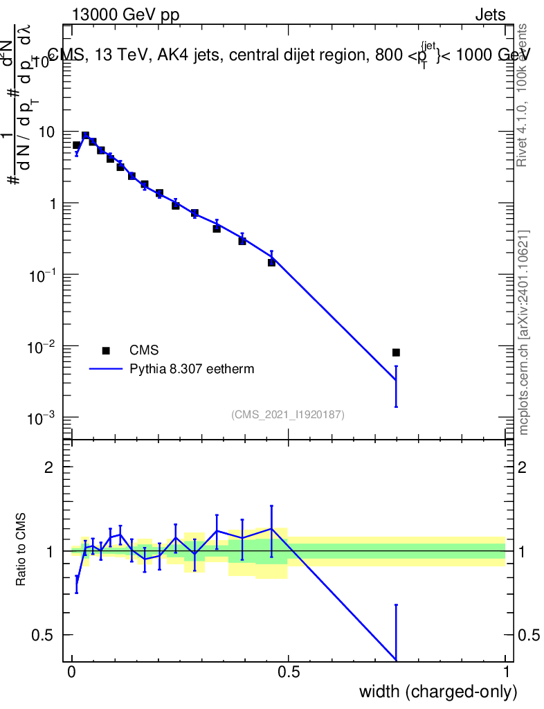 Lines: data, pythia8 8.307 eetherm |