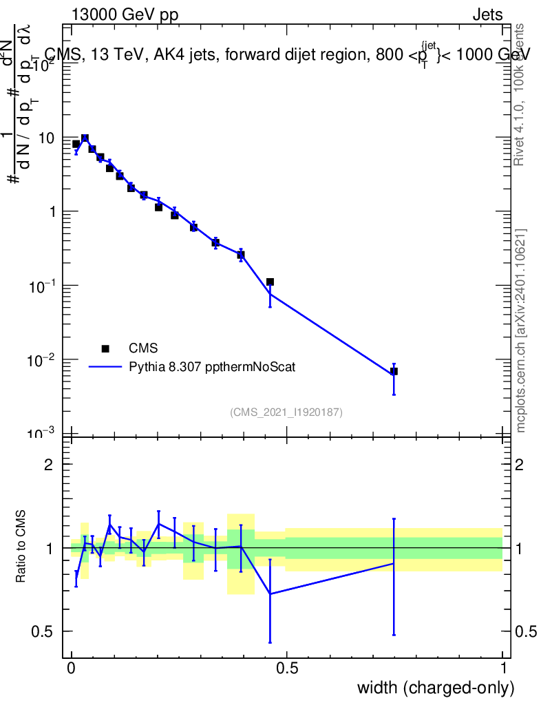 Lines: data, pythia8 8.307 ppthermNoScat |