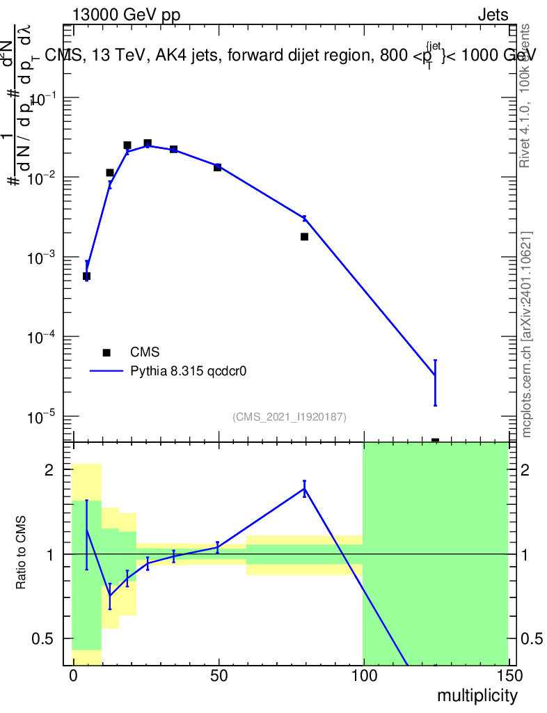 Lines: data, pythia8 8.315 qcdcr0 |