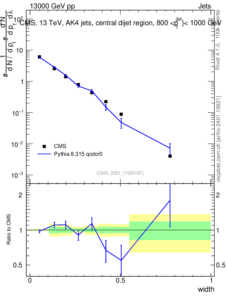 Lines: data, pythia8 8.315 qcdcr0 |