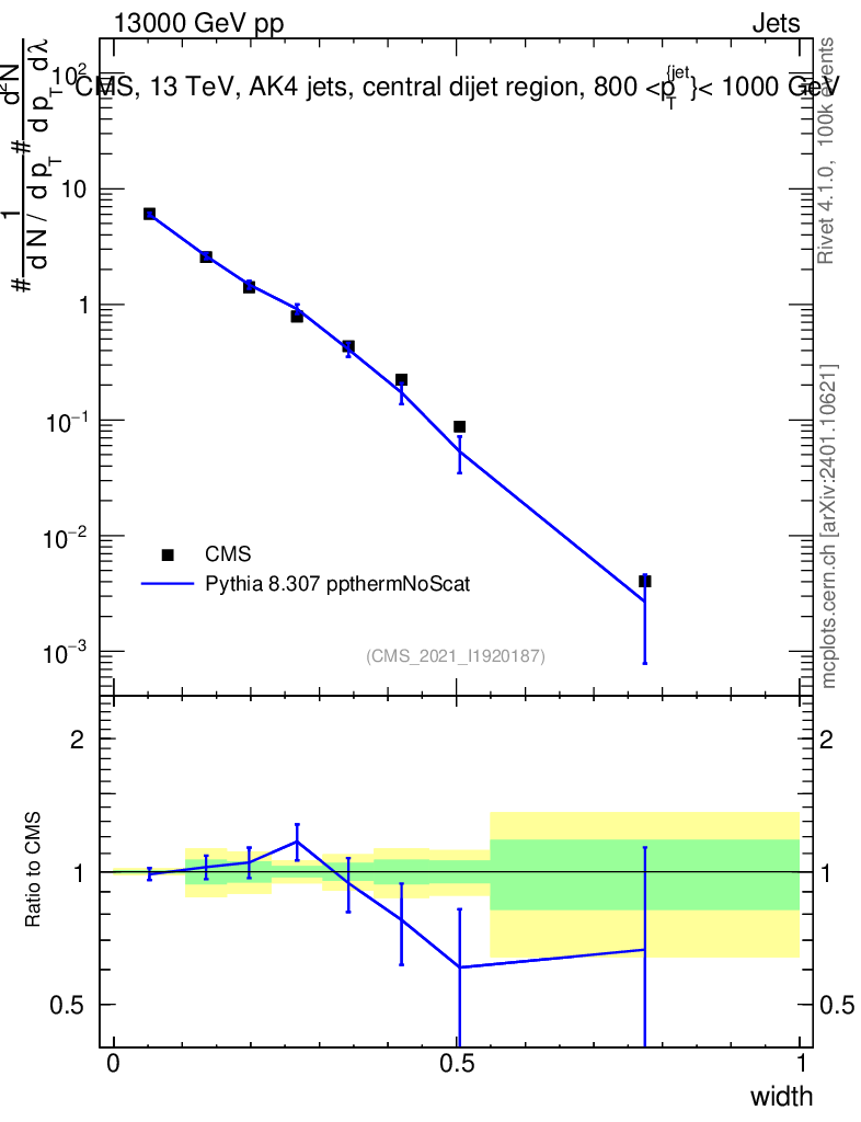 Lines: data, pythia8 8.307 ppthermNoScat |